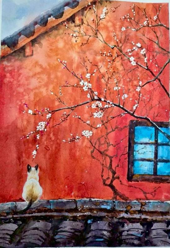 | 第八週 | 8 | 風景繪畫(櫻花樹) | 先暈染底色,待乾後依照樹枝形狀繪出樹形,再用細筆點出花朵團簇的樣子 |