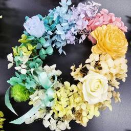 | 自選創作桌花 作品:印象遊彩桌花 | ~學習色彩感知與配色~ 恣意選擇喜歡花色創作桌花,成為生活空間裡最自然的藝術品。 |
