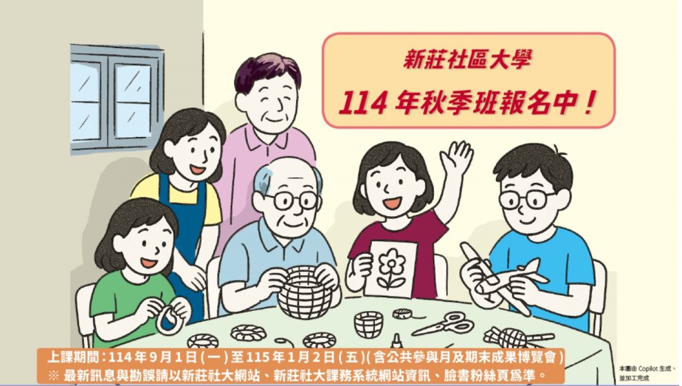 114年 新莊社大【秋季班】課程 6/16(一)開始報名